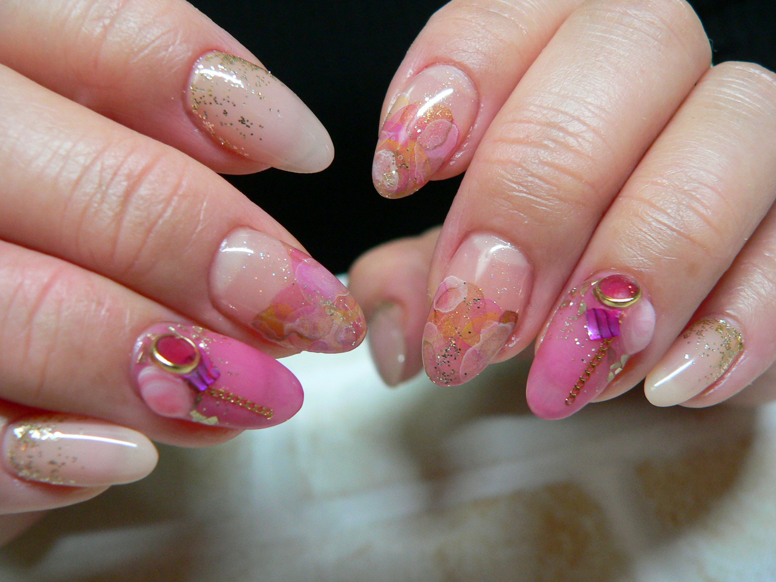 最近よく使うカルジェル#42に、たらしこみフレンチ。