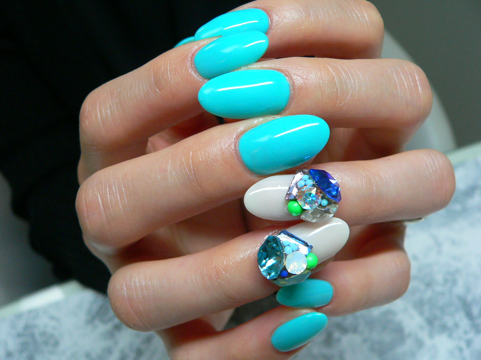 本日も目が覚めるようなターコイズGREENをセレクト☆ 1点豪華主義のビジューが更に際立ちます!