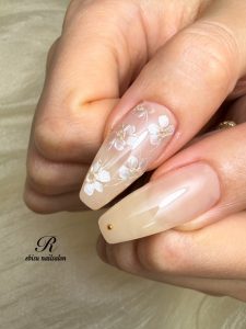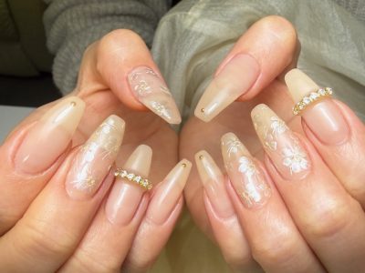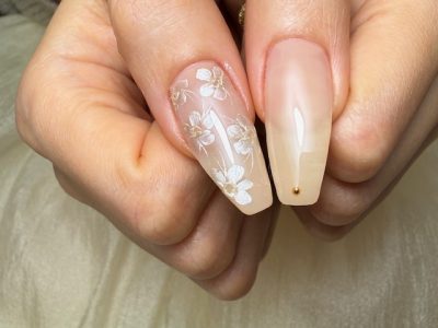 新発売★フェミニンメモリージェルで、刺繍のようなレースのような繊細な奥行きを出すフラワーアートにされました。