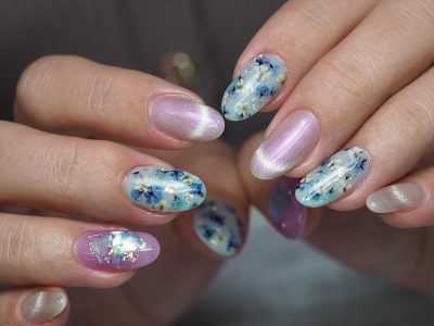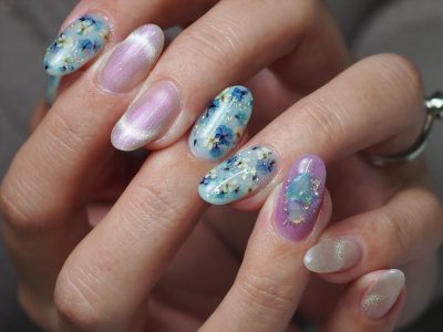 今年っぽくマグネットフレンチを入れて、2024バージョンのドライフラワーネイルをお楽しみ頂きます♬
