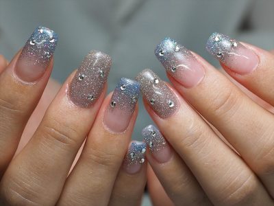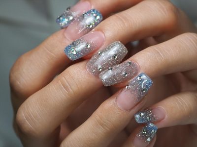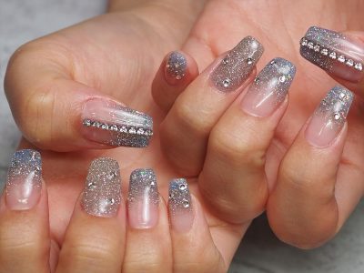 親指にアクセントのチェーンストーンをON★