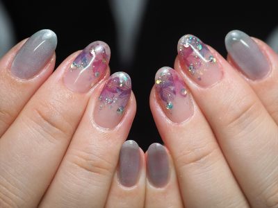 梅雨の準備完了デス!シースルー紫陽花風ネイル