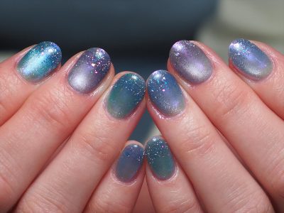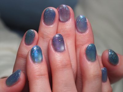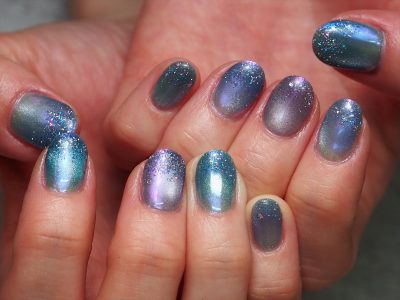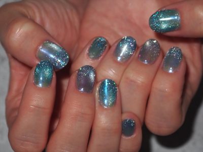 本日は季節カラーをメインにフラッシュ&マグネットジェル仕上げ。