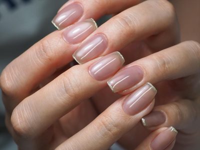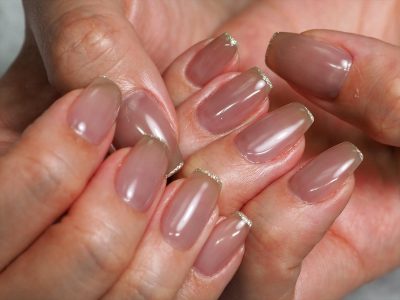 シンプルに爪先ラメラインでアクセント★ 透け感スキンカラー大人女子の大好物です。