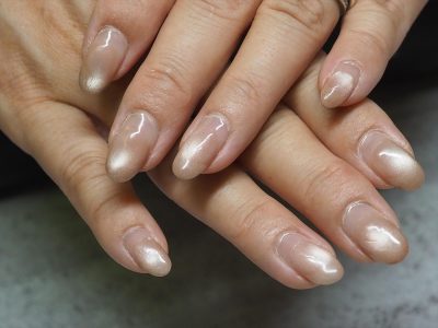 1ヶ月以上経過してお爪が伸びてしまったので、伸びた箇所が気になるとの事でご自分でトップコートを塗られての御来店。