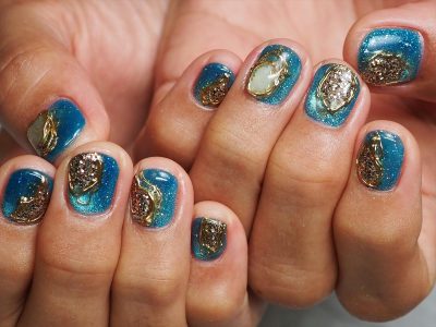 まだまだ夏だし海に行かれるというお客様。マグネットジェルのBLUEで更に派手派手に★