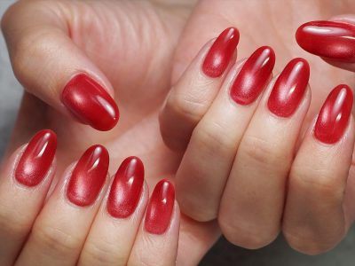 本日はお客様の大好きな深めのREDカラーをセレクト★ プランパーマグネットジェルで華やかなお手元に!