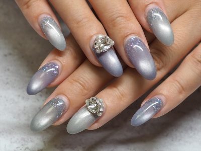 本日も安定のマグネットジェル&ビジュー。 毎回飽きないようです。
