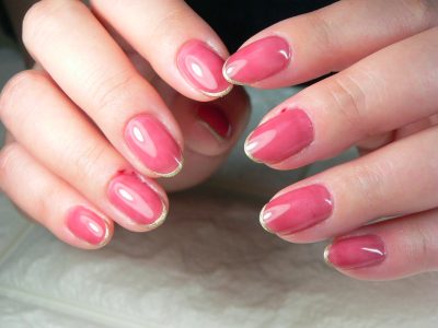 お仕事がお忙しくストレスが溜まり、お爪の周りをむしってしまい所々に流血の後が・・・・(^-^;