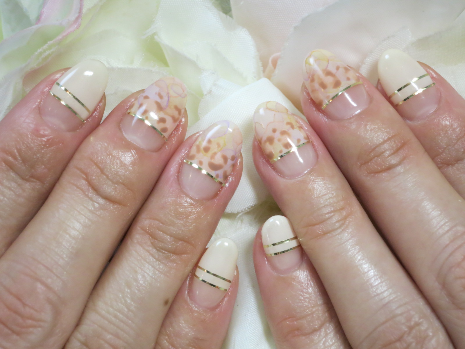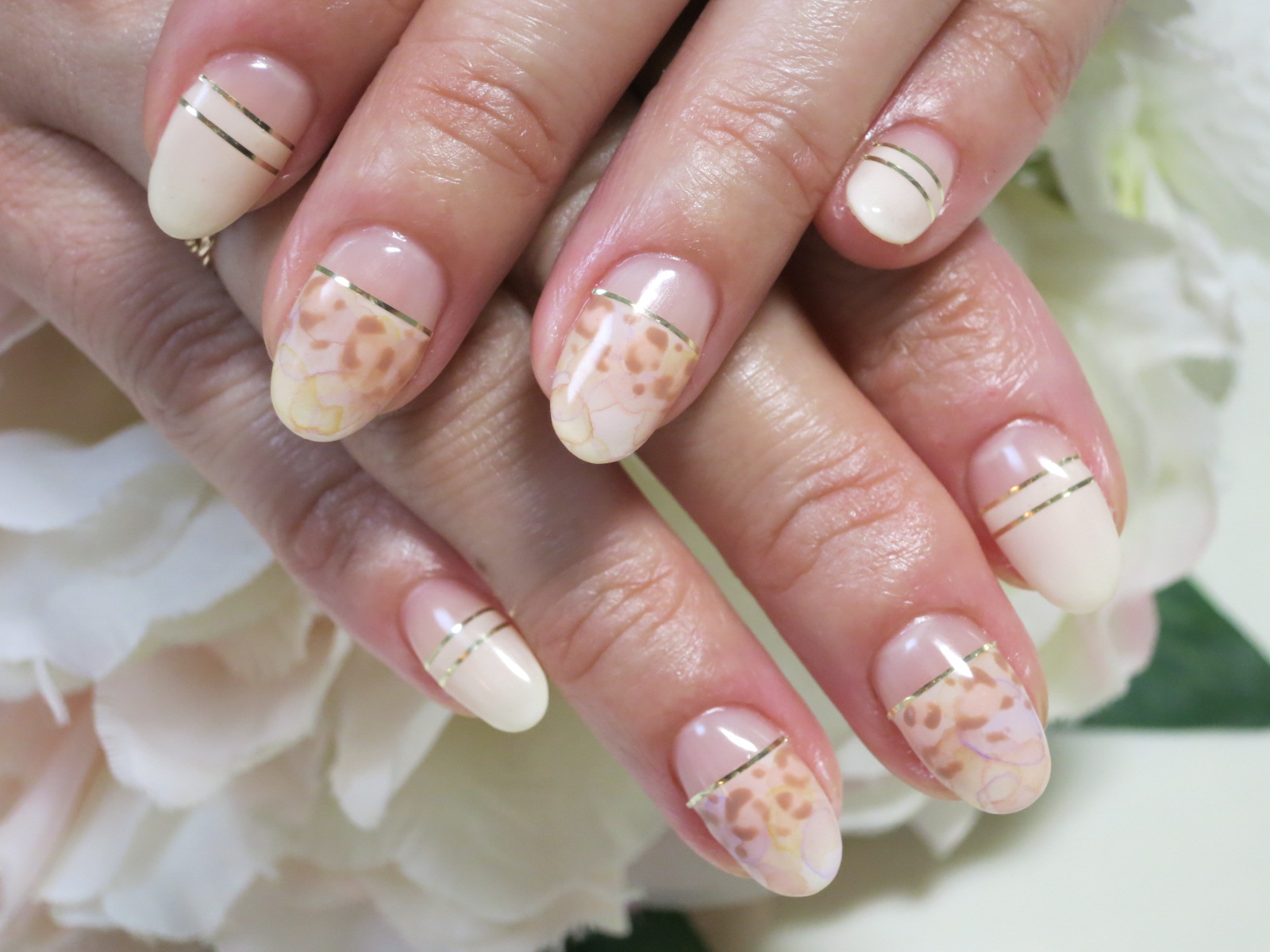 アイボリー仕様で、リアル過ぎない優しいレオパードネイルを演出しました。