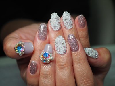 3Dエンボスフラワーの極上レースネイル☆☆☆