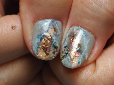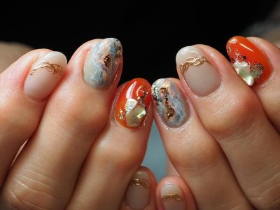 大人っぽい配色の天然石ネイル。