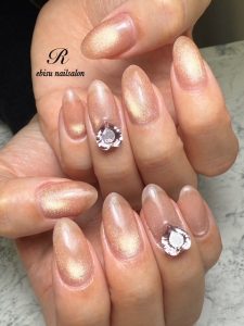 光りが強めのマグネットジェルで、ワンカラー仕上げ