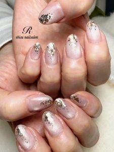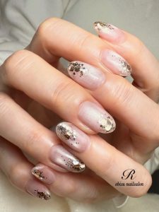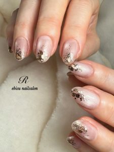 シャンパンの泡が立つイメージのきらきらラメネイル
