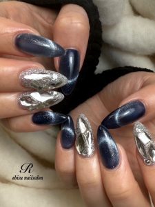 マグネットフレンチのカラーは、ネイビーで引き締めて。。。カッコイイっ☆☆☆