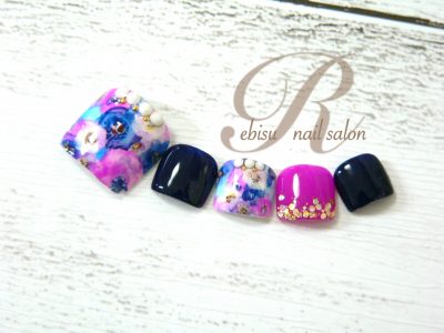 手描きフラワーペディキュア*スキップしたくなるお足元を演出しますっ!