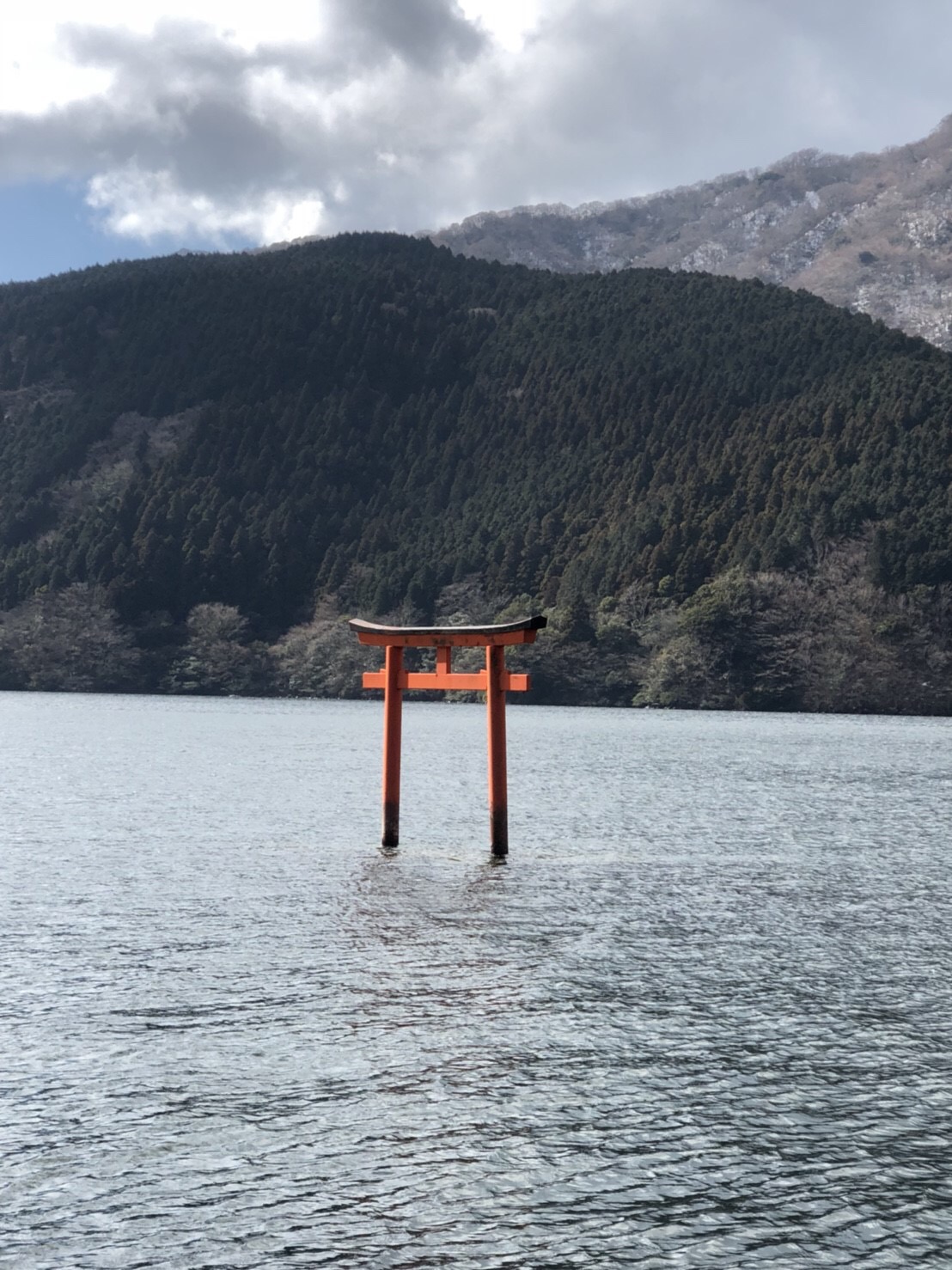 湖の中に、ひっそりと佇む鳥居が幻想的★ 雪も沢山残っていました。