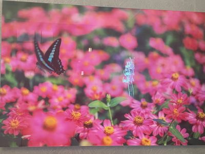 大きいスクリーンに素敵な繊細な作品が映し出されている壮大な空間。