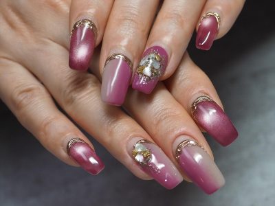 マグネットジェル×フラッシュジェル★ 安定の美しさですね~。