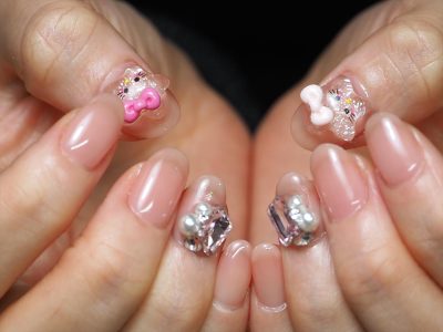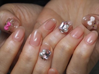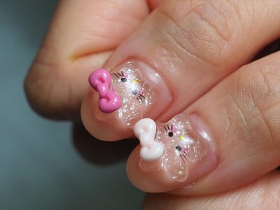 お持ち込みパーツでキティちゃんモドキ???ネイル???