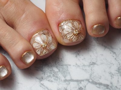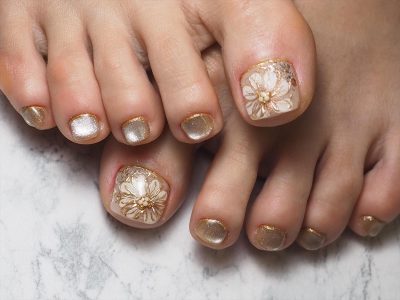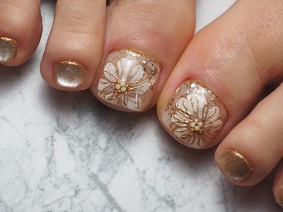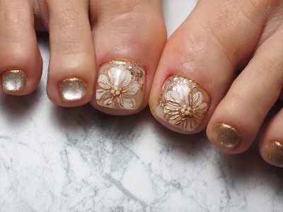 2度見されちゃう♥大人シャンパンゴールド・FLOWERペディキュア