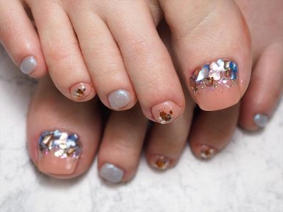 【フラッシュジェルvsミラー】ミラーフレンチ・ペディキュア