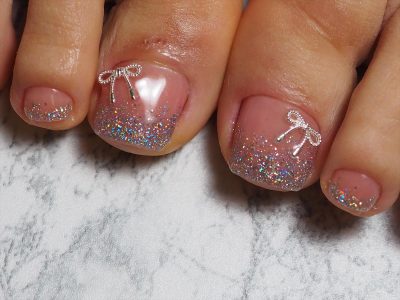キュートリボンと、フラッシュジェルのキラキラとの相性も抜群ですね(^_-)-☆