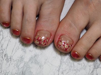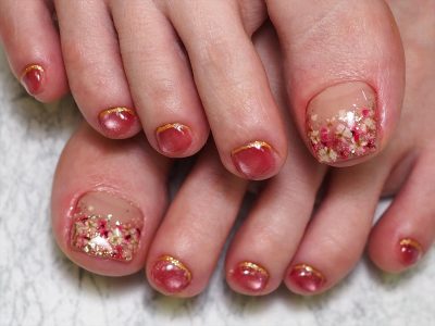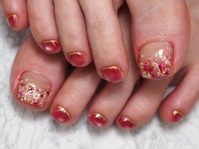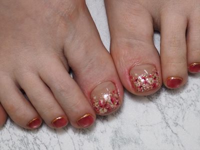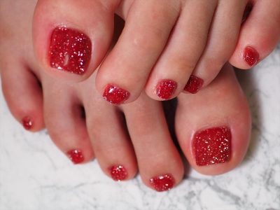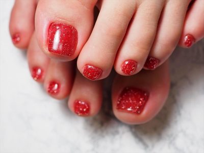 本日はお足元を一瞬で明るく華やかにしてくれるREDペディキュアにされました。