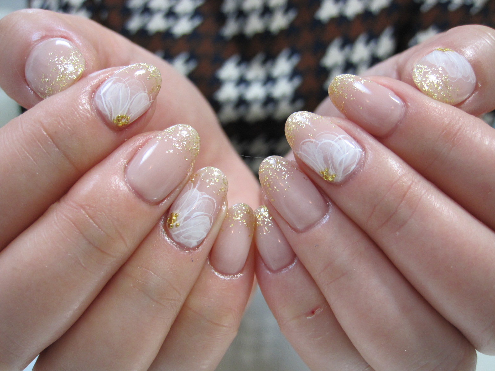 ビジュー抜きのお上品なフラワーネイルです。