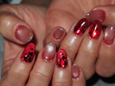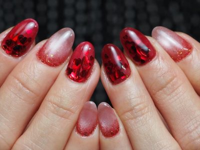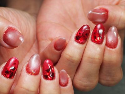 VALENTINEを意識して、王道REDハートホログラムネイル