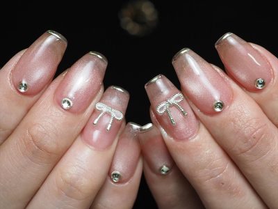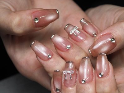 本日はガラリとイメージを変えて、THE女の子なリボンネイル