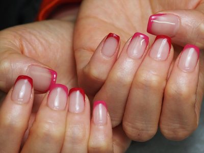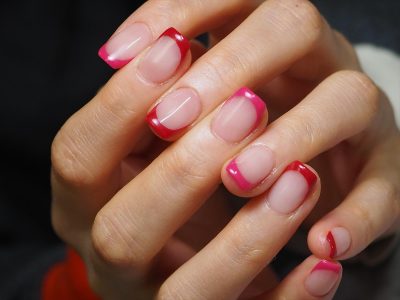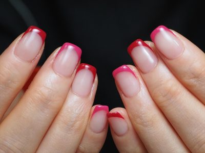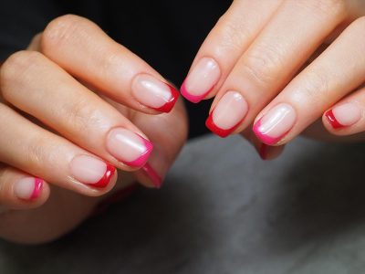 本日はお爪のカタチも変えて、VALENTINEカラー2色を使用して細めのスキニーフレンチネイルにされました。