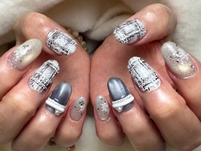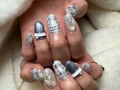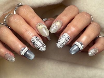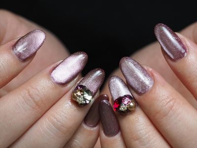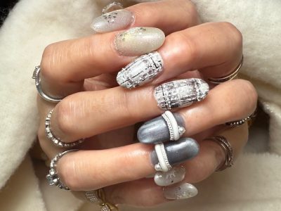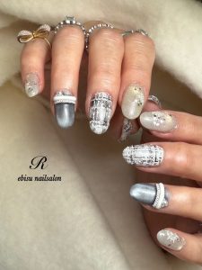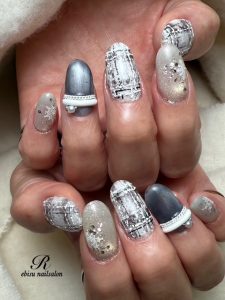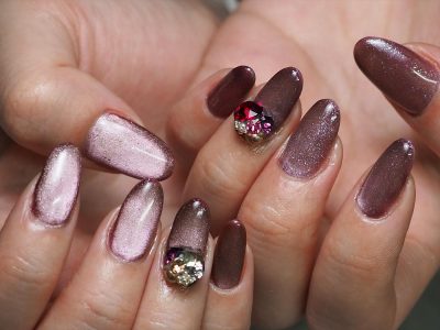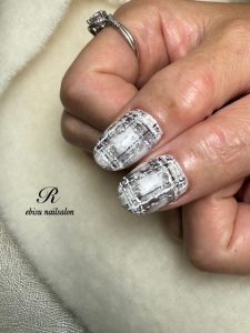 ビジューも大人っぽいダークなカラーを添えて、よりエッジのきいたスタイリッシュなお仕上げに★