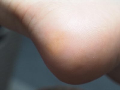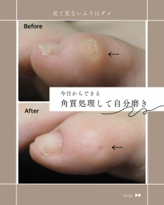 本日のお客様は、仕事で履いている靴の切り替え目が当たってこの部分に角質が出来てしまいます。