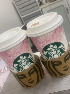 この日はスタバのラテをちゅうもんすると2杯目が安くなるので、2人でベンティーサイズを注文☆