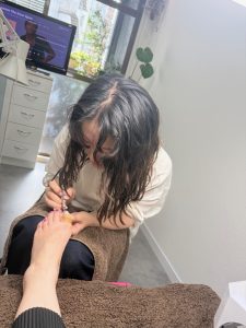 本日のお客様はそのような事をご説明した上で、巻き爪ケアをご自分のペースでされています。