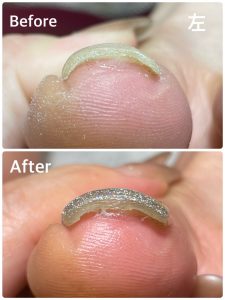 巻き爪ケアHeySwitch3回目のお客様のお戻り状態のbefore&afterをご紹介させて頂きます(*^_^*)
