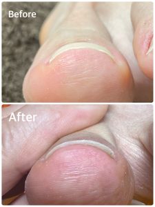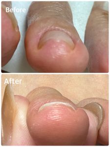 両サイドがお肉に食い込んでいて見た目からも痛そう、辛そうだったお爪が解放感出てます!