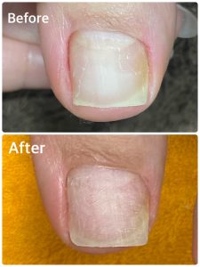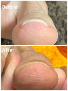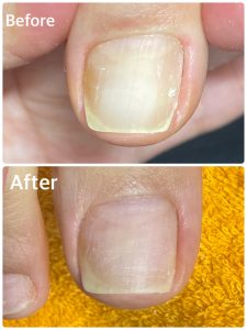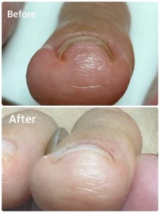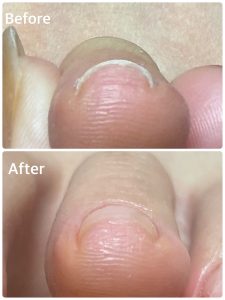施術後すぐの撮影ですが、少し開いたので浮いていたお爪の隙間が広がる事によって空間が少なくなりました。