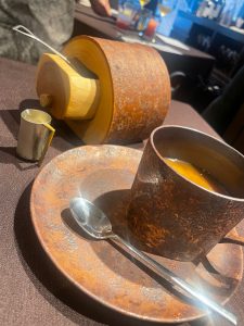ウフヴルイエ、えびのクロケット、菊芋のポタージュがメニューにありました。