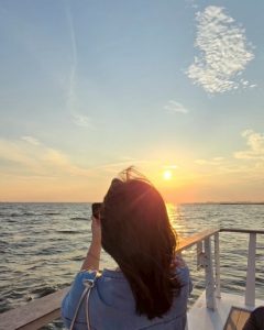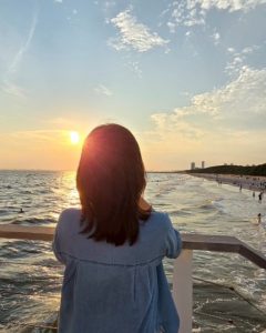 昼の海も楽しいけれど、夜の夕日の海も最高でした~うっとり♡♡♡