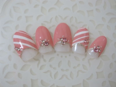 ボーダーやドットも取り入れ、ストーンでカラフルに飾りました
