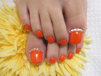 秋を先取るテイストも入りのお洒落なペディキュアに仕上がりました