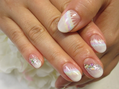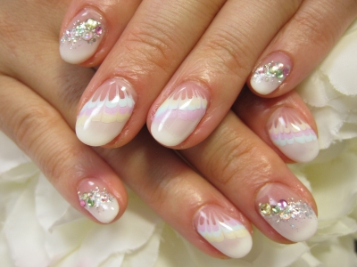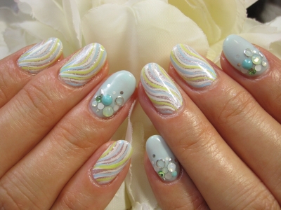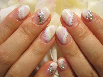 ハンドは、パステル3色のピーコック斜めフレンチ