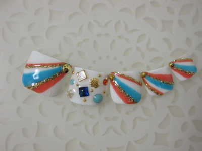 本日のネイルは、私をお揃いの色違いのサマーゼブラネイル