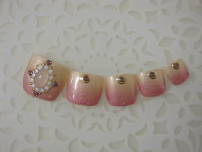 ピンクの濃淡違いの逆フレンチに、マイメロディシールを施し、ドット柄もプラスしました