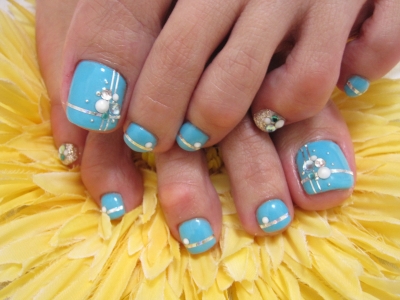 (フットバス・整爪・甘皮処理・ジェルワンカラー・スポンジアート・保湿)⇒合計¥11500