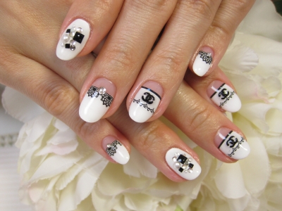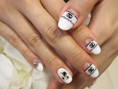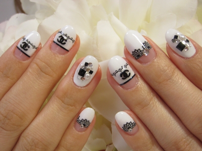 本日は、シャネルのブラックロゴパーツを使用して、レースシールとミックスして