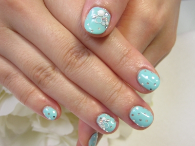 A様の小ぶりのお爪に、ドットを詰め込みました