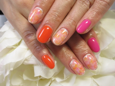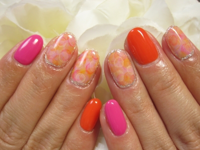 オレンジ&ピンクのたらしこみネイル★